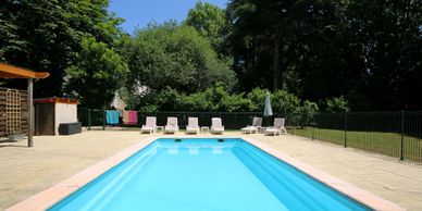 Here is a view of the 10 x 4 metre pool with surrounding fence with two safety gates. This pool is to the south west of the main house and is in full sun for most of the day.